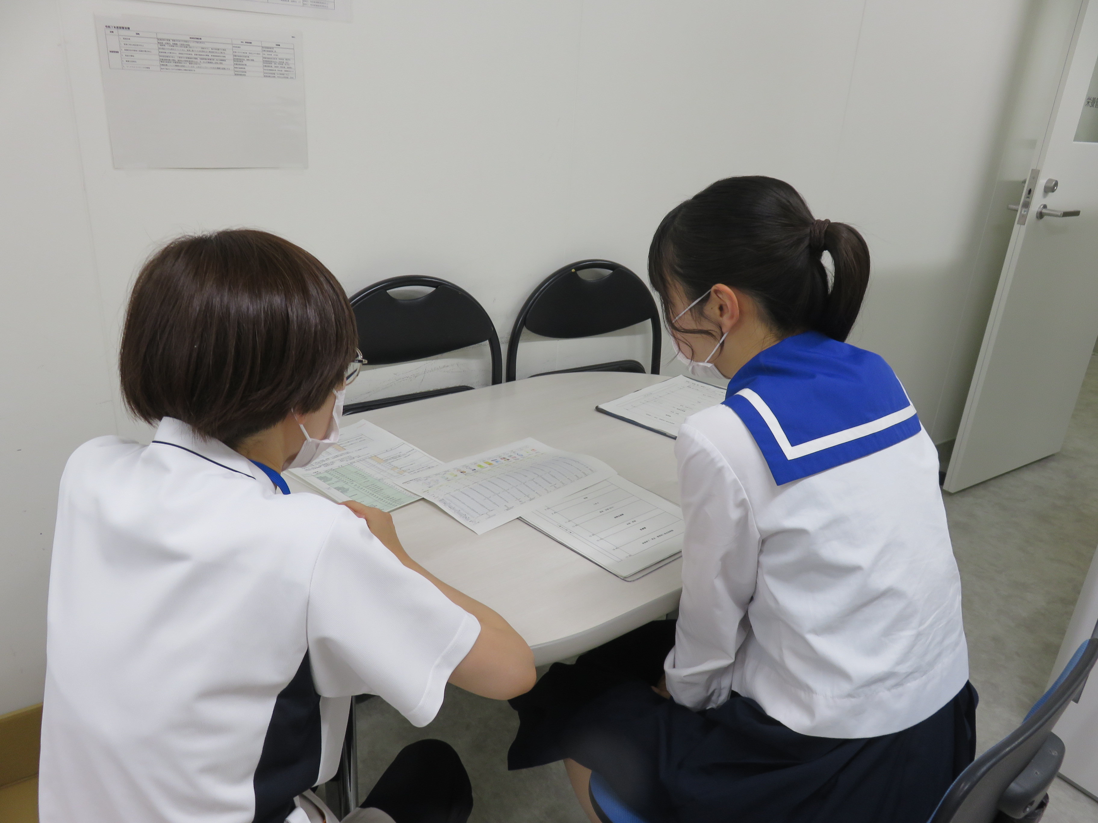 医療事務に興味があるとのことで、受付や書類作成など事務職が普段行っている仕事を中心に体験をしていただきました。また、薬剤師や栄養管理士の仕事についても真剣に耳を傾け、医療について学んでいました。